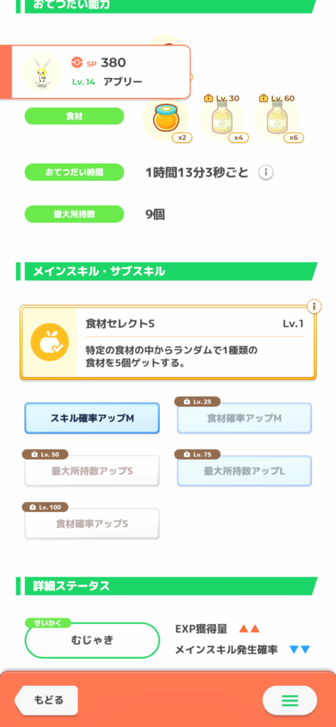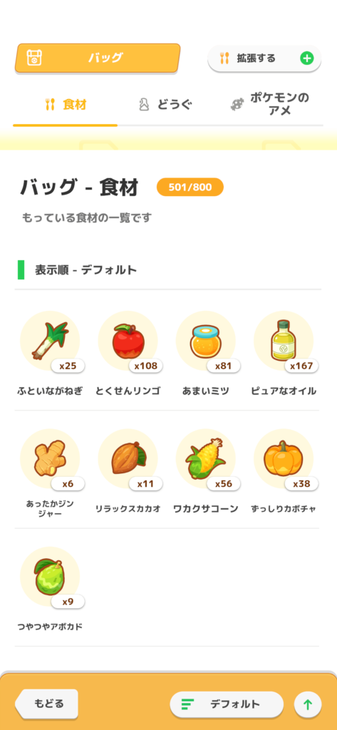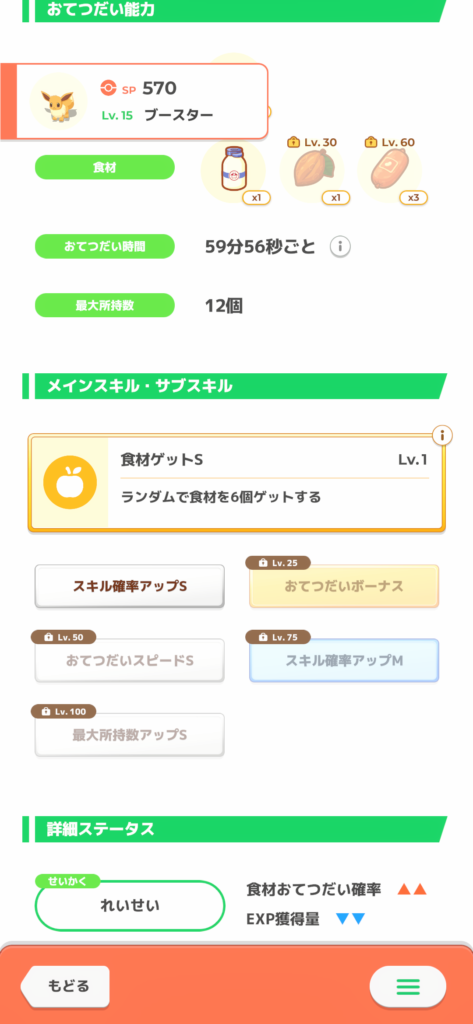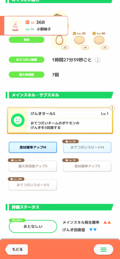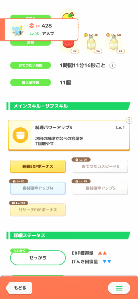 ・食材確率がLv25で解放されるのでLv30まで上げたい。